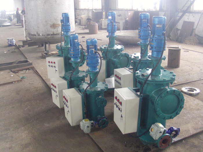 二、全自動反沖洗濾水器運行說明: 全自動濾水器在正常過濾狀態(tài)時,電動減速機不啟動,排污閥處于關(guān)閉狀態(tài)。從進口進入濾水器筒體內(nèi),水通過濾網(wǎng)產(chǎn)生壓力差,隨著過濾的不斷進行,各種雜物在濾網(wǎng)上的附著,通流面積逐漸減少,壓力差逐漸升高,當壓力差達到預(yù)設(shè)值時,差壓變送器將信號傳送給PLC,濾水器(過濾器)進入自動反沖洗狀態(tài),PLC指令啟動電動減速機啟動按設(shè)定轉(zhuǎn)速帶動濾網(wǎng)芯旋轉(zhuǎn),PLC再次指令啟動電動排污閥,此時各種雜質(zhì)將會在一定量水反沖洗后經(jīng)電動排污閥,從排污口排至排污系統(tǒng),約五分鐘完成自動反沖洗全過程、自動反沖洗、自動排污過程后,壓差恢復正常時,PLC指令停止電動減速機運行,PLC指令同時關(guān)閉電動排污閥,過濾系統(tǒng)進入正常過濾狀態(tài),等待下一次自動反沖洗循環(huán)。不同的濾網(wǎng)適用于不同的過濾精度(采用不銹鋼板開孔制作過濾網(wǎng),具有強度高,使用周期長,安全系數(shù)高等優(yōu)點)。濾水器(過濾器)過濾精度≤0.9mm[采用不銹鋼板激光制作濾網(wǎng),過濾精度具有過濾精度精,強度高,使用周期長。]。PLC控制系統(tǒng)可根據(jù)用戶要求進行不同配置設(shè)計,并可與LCU機房、DCS系統(tǒng)聯(lián)網(wǎng)運行,同時還可以現(xiàn)場手動操作等控制。自動反沖洗過濾器(濾水器)配安全保護有報警系統(tǒng),確保過濾系統(tǒng)的安全穩(wěn)定運行。  |