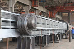 高溫?zé)峁軗Q熱器是由不同工質(zhì)的不銹鋼換熱管組成,組合式熱管換熱器,主要由熱管、隔板、殼體、其它零部分組成。冷、熱流體通道之間用隔板絕對(duì)隔開(kāi),熱管作為傳熱元件實(shí)現(xiàn)冷、熱流體間的熱量轉(zhuǎn)換。整個(gè)換熱器又分為高溫?zé)峁軈^(qū)和中溫?zé)峁軈^(qū)和低溫?zé)峁軈^(qū)。在低溫區(qū),工作溫度限制在250℃以下,采用水(經(jīng)化學(xué)處理后的)作為熱管工質(zhì)較為理想;在中溫區(qū),工作溫度限制在250~400℃范圍內(nèi),采用萘作為熱管工質(zhì),萘熱管在400℃左右具有可靠的熱穩(wěn)定性和良好的傳熱性,與碳鋼管相比具有良好的相容性+安全性,預(yù)計(jì)有很長(zhǎng)的使用壽命長(zhǎng);在高溫區(qū),工作溫度在600℃以上常采用液態(tài)金屬熱管,液態(tài)金屬有良好的熱穩(wěn)定性+較低的飽和蒸汽壓,如鈉在800℃時(shí)飽和蒸汽壓僅為0. 047MPa ,因此在高溫條件下液態(tài)金屬熱管的殼體幾乎不承受內(nèi)壓,而且常用的幾種液態(tài)金屬在高溫下均具有較高的汽化潛熱,如800℃時(shí)鈉的汽化潛熱為3977kJ / kg ,因而高溫?zé)峁苣軌騻鬟f很高的熱量。